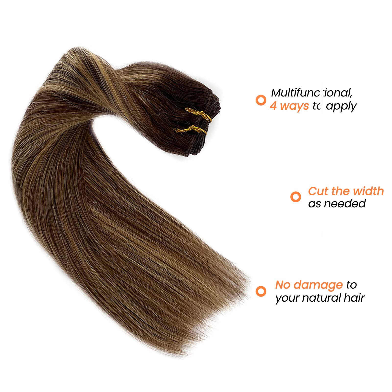 18 Inches Weave Weft Extensions Human Hair 100 Gram Medium Brown Fading To Caramel Blonde Highlight With Medium Brown Balayage Sew In Hair Extensions Amazon Co Uk Beauty